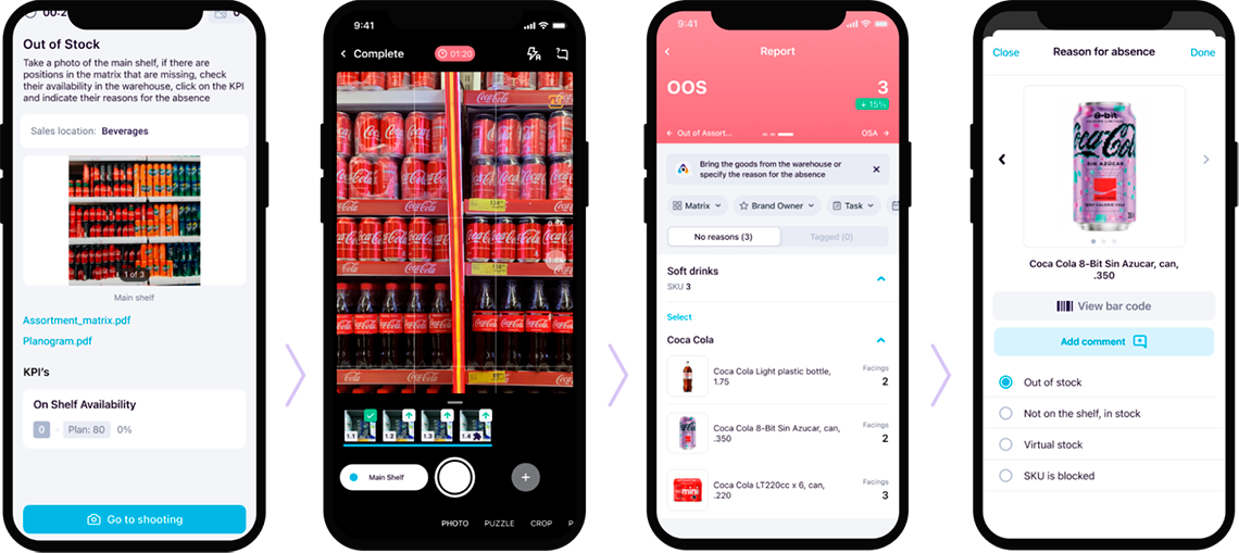 - Encuentre los motivos de los casos por falta de existencias en los estantes con confirmaciones fotográficas.