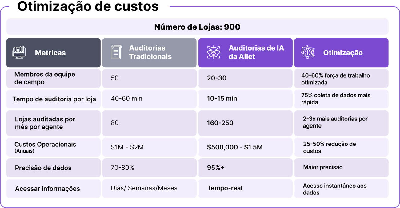 Ao automatizar as auditorias de prateleiras, varejistas e empresas de bens de consumo podem reduzir o tempo e o dinheiro gastos em verificações manuais, obtendo insights precisos sobre: