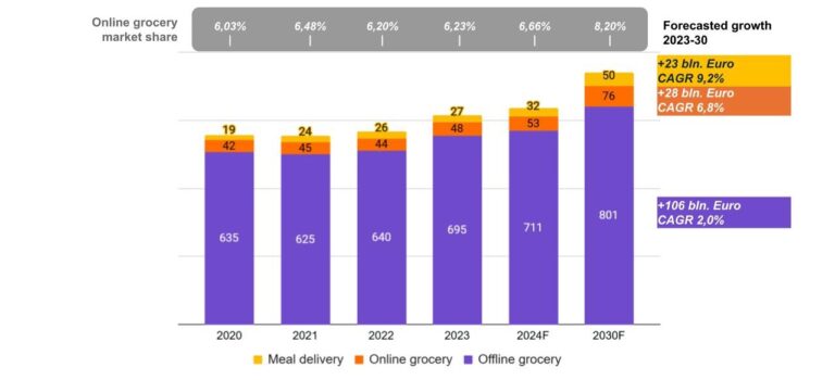 Enquanto o varejo de mercearia enfrenta pressão devido ao enfraquecimento do poder de compra dos consumidores europeus, desafios no mercado de trabalho e a competição crescente entre marcas e marcas próprias, há amplas oportunidades para inovação tecnológica — como IA, robótica e análise avançada — para aumentar a eficiência das operações e apoiar o crescimento dos negócios. Essa necessidade se aplica ao segmento online em expansão, mas ainda mais ao varejo offline, que deve continuar crescendo nos próximos anos.